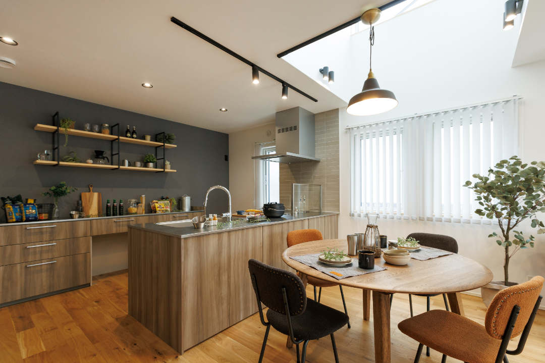 開放的なリビングの家族とつながる家|花巻市材木町モデルハウス