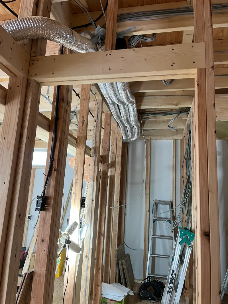 コンセント、換気ダクト工事も終了で、断熱工事に進んで行きます!!