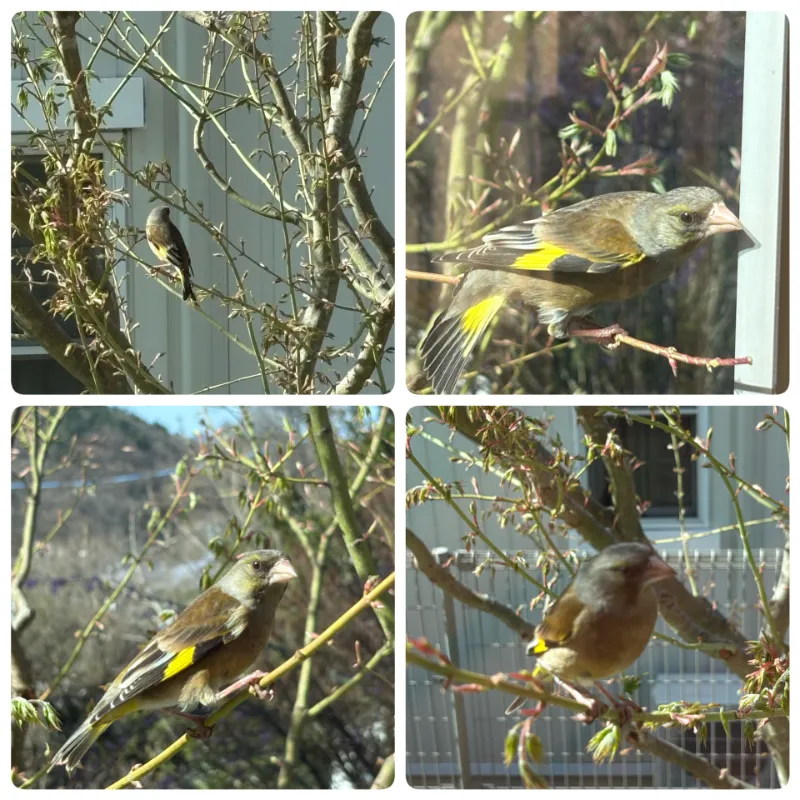 今朝、春のやわらかな陽ざしの中、我が家の庭のもみじから窓を叩く音、そこには小さな鳥が。調べてみると、カワラヒワでした。普段は何気なく見ている庭の木も、こうして誰かが訪れてくれると少し特別な存在に感じられます。カワラヒワはスズメくらいの大きさで、黄緑色の羽が特徴的な野鳥。ちゅんちゅんというよりも、どこか優しいさえずりで、静かな時間を運んできてくれました(農家さんにとってはお米を食べられたりと天敵のようです)。もみじの枝にとまり、周囲を見渡す姿はまるでこの場所を気に入ってくれたかのよう。出社前の出来事でしたが、忙しい日常の中でふっと心がほどける瞬間でした。