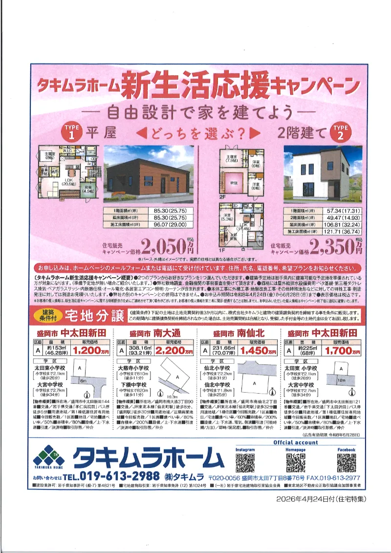 自由設計の住まいを平屋 or 2階建てから選べる企画です。
