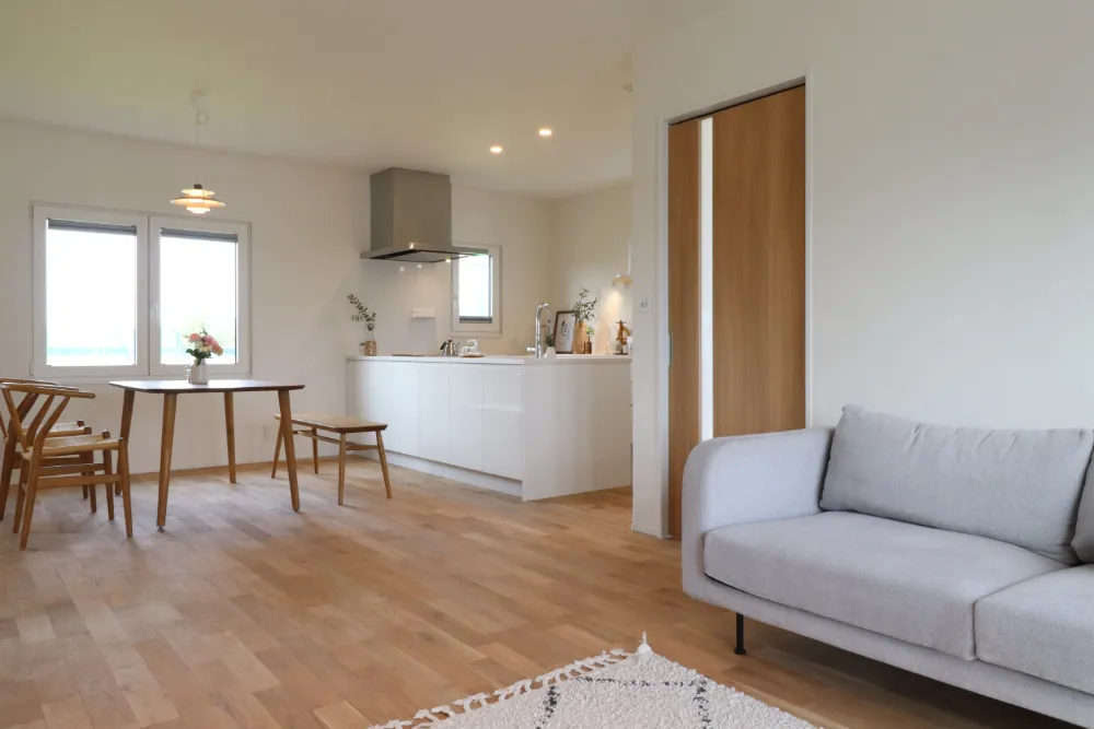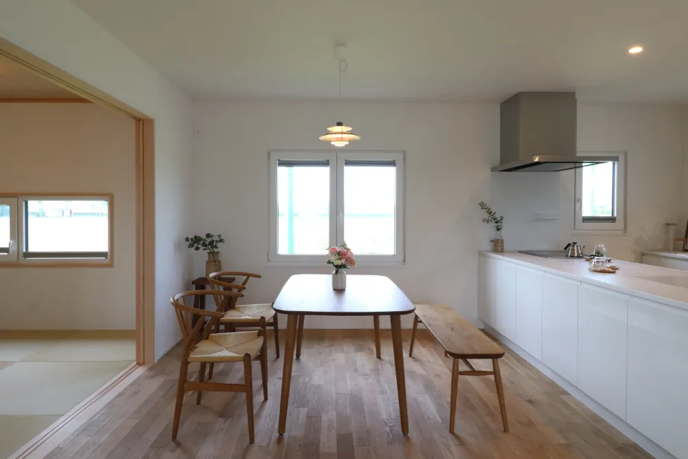 冬の寒さから解放されたいという思いで2階建てから平屋に建て替えたお施主様。 新しい住まいは心地よい上質な暖かさに包まれています。