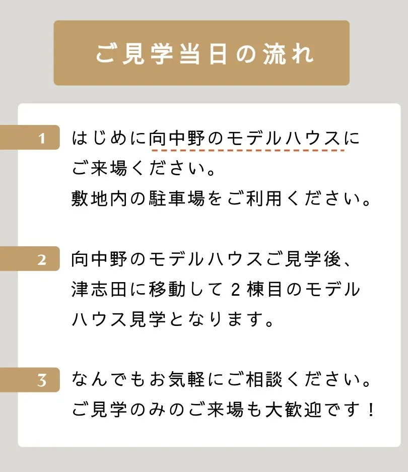 はじめに向中野モデルハウスにご来場ください。
