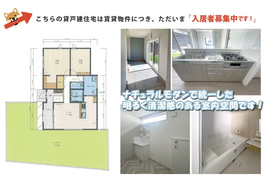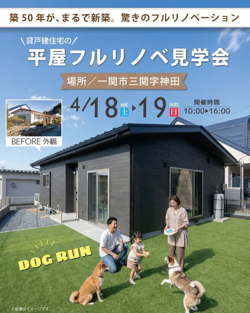 4/18.19平屋フルリノベ見学会(ドッグラン付き貸戸建) in一関市三関