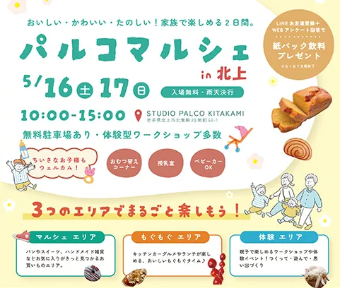 スイーツやごはん、ハンドメイド、ふわふわやお子様体験などイベント盛りだくさん|北上パルコマルシェ