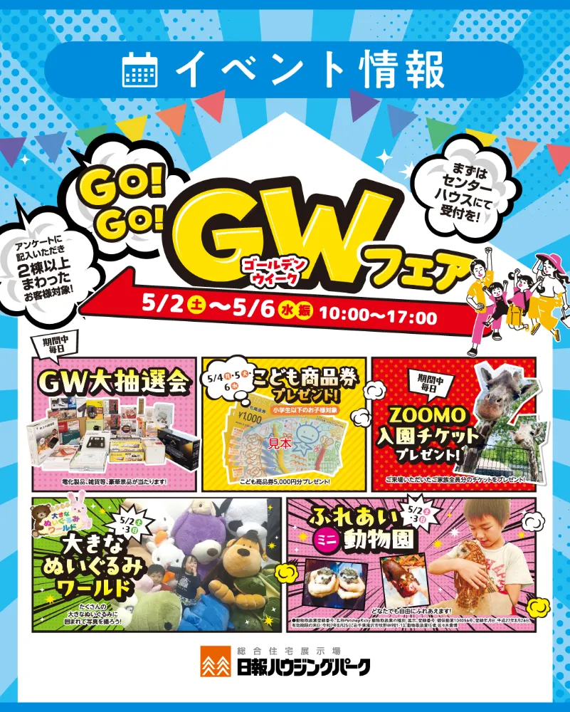 GWは家族みんなで日報ハウジングパークに遊びに来ませんか?