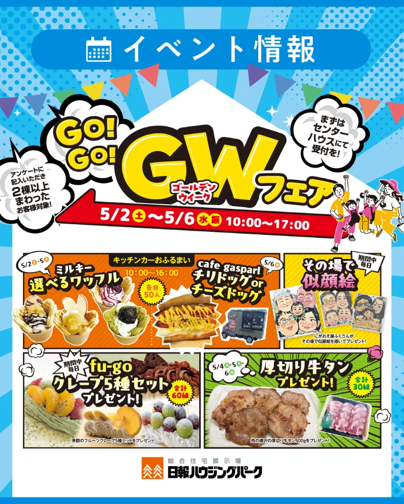 イエタッタ岩手 > 住宅イベント > 総合住宅展示場 日報ハウジングパーク > 【GWフェア開催のお知らせ】