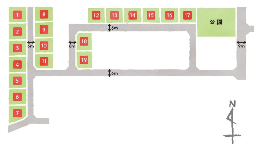 ■所在地/紫波郡矢巾町大字南矢幅第9地割87番54 他■土地面積/182.03㎡ ~ 190.31㎡(55.06坪 ~ 57.56坪)■総区画数/19区画■販売区画数/19区画■用途地域/第一種住居■地目/宅地■設備/電気:引込可、ガス:無(個別プロパン)、上水道:引込有(公営水道)、下水道:引込有(公共下水道)■私道負担:無、道路幅員:6m ~ 10m■建ぺい率・容積率/建ぺい率:60%・70%、容積率:200%■開発許可番号/岩手県指令盛広土第10-718号、変更:岩手県指令盛広土第11-11号。■開発面積/3490㎡■工事完了時期/2026年2月頃■土地の権利形態/所有権■取引態様/売主■取引条件有効期限/2026年2月末